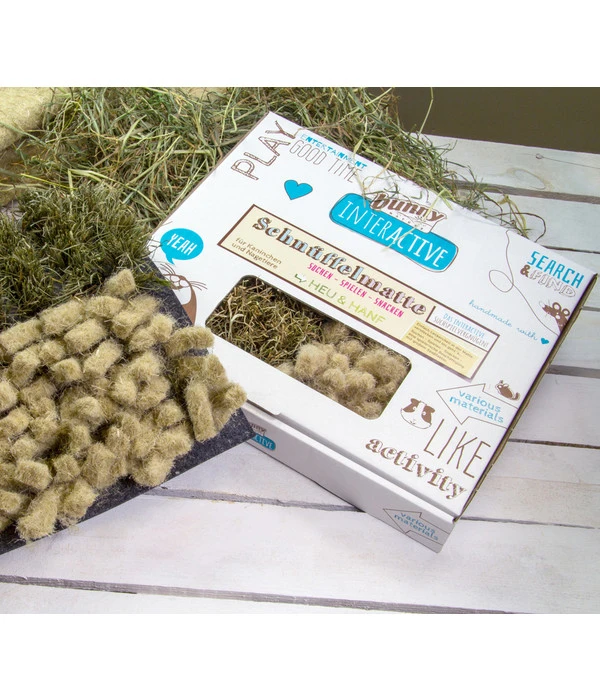 Mit der bunny® NATURE Schnüffelmatte HEU & HANF bringen Sie frischen Wind ins Zusammenleben. Die bunny® NATURE Schnüffelmatte HEU & HANF ist die perfekte Kombination aus Beschäftigungsmöglichkeit und Nagersnack. Ihre Kaninchen und Nagetiere werden von dem interaktiven Suchspiel begeistert sein!