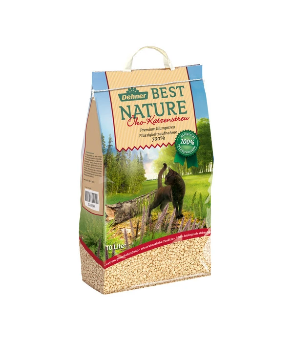Sauberkeit ist für Katzen besonders wichtig – das gilt auch für ihr Katzenklo. Mit der Öko-Katzenstreu von Dehner Best Nature halten Sie das Katzenklo Ihres Stubentigers einfach und problemlos sauber. Die Premium Klumpstreu ist 3x ergiebiger und sparsamer als herkömmliche Katzenstreu. Durch die starke Saugkraft mit bis zu 700 % Flüssigkeitsaufnahme ist die klumpende Streu extrem ergiebig und sparsam.
