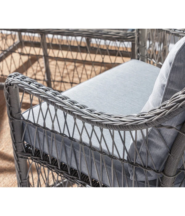 Man sieht es der Dehner Geflechtlounge Santos vielleicht nicht auf den ersten Blick an, aber mit ihr entscheiden Sie sich für eine stabile, robuste und witterungsbeständige Outdoor-Ruheoase. Für die Stabilität sorgt ein absolut „unbeugsamesˮ Alugestell, um das sich die Stränge des ebenfalls outdoortauglichen Kunststoffgeflechts ranken. Es hat zwar die gleiche optische Ausstrahlung wie das natürliche Gegenstück Rattan, trotzt Wind, Regen und Co jedoch deutlich besser und ist äußerst pflegeleicht. Selbst die gemütlichen Polster sind mit einem Bezug aus Polyester ausgestattet, der nach einem kleinen Regenguss auch schnell wieder trocken ist. Klingt gut? Ist klasse!