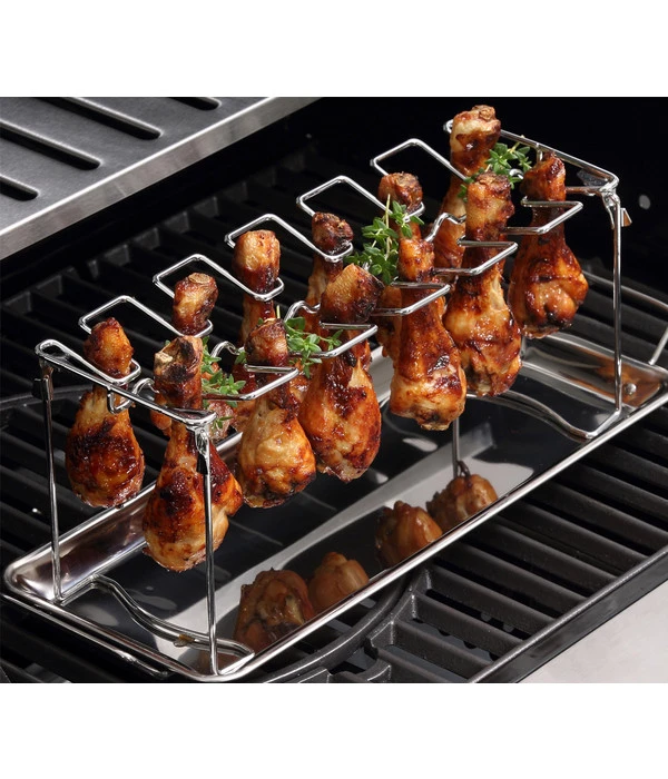 Jetzt ist die Gelegenheit, eine große Familien- oder Freundesrunde zur fröhlichen Chicken-Wings-Party-einzuladen, denn ab jetzt sind Sie der stolze Besitzer eines Dehner Markenqualität Hähnchenkeulenhalter! Sie meinen, Hühnerkeulen und Chicken Wings haben Sie auch sonst schon zubereitet? Das mag sein, aber noch nie wurde der amerikanische Grill-Klassiker so köstlich knusprig, wie mit dem Dehner Markenqualität Hähnchenkeulenhalter. Denn anders als früher liegen die Keulen im Dehner Markenqualität Hähnchenkeulenhalter nicht in einer Grillschale oder auf einem Rost, sondern sie hängen. Da leuchtet es jedem ein, dass die Hähnchenhaut im Dehner Markenqualität Hähnchenkeulenhalter besonders kross wird, nicht wahr? Und ab jetzt müssen Sie auch keine Scheu mehr vor vielen hungrigen Mäulern zu haben, denn auf dem Dehner Markenqualität Hähnchenkeulenhalter passen bis zu 12 Hähnchenschenkel! Noch ein Tipp für alle, die Kinder haben: servieren Sie doch beim nächsten Kindergeburtstag statt Würstchen knusprige Chicken Wings von Ihrem Dehner Markenqualität Hähnchenkeulenhalter. Die Herzen der Kinder werden Ihnen zufliegen!
