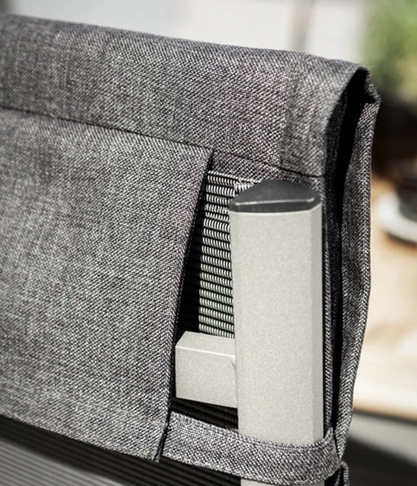 Für die außergewöhnliche Bequemlichkeit, die Ihnen der Klappstuhl ‚Colmar‘ bietet, ist in erster Linie das moderne Kunststoffgewebe Textilene verantwortlich. Denn dieses Gewebe ist einerseits elastisch genug, dass es sich sanft der Körperform anpasst, andererseits ist es so formstabil, dass es nach einer Belastung wieder in seine Ursprungsform zurückgeht. Doch auch die 110 cm hohe Rückenlehne spielt eine tragende Rolle für das bequeme Sitzgefühl, denn die Rückenlehne ist mehrfach verstellbar, so dass jeder im Klappstuhl ‚Colmar‘ genau die Sitzposition für sich finden wird, die ihm im Moment am angenehmsten ist.