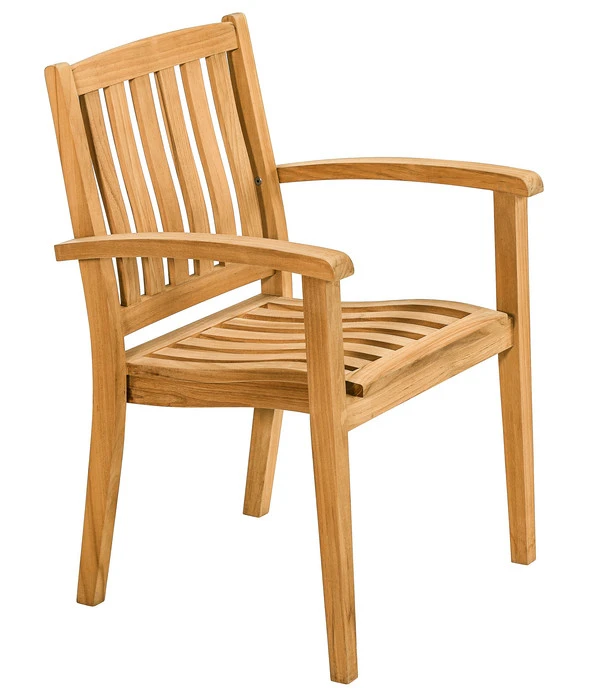 Teakholz wird oft als der Diamant unter den Edelhölzern bezeichnet. In Europa wird das wegen des hohen Anteils an natürlichen Ölen extrem harte, widerstandsfähige Holz schon seit Jahrhunderten für den Bau hochwertiger Gartenmöbel eingesetzt, die traditionell ein fester Bestandteil der berühmten englischen Gartenkunst sind. In die Gruppe dieser edlen Möbel reiht sich der Dehner Stapelsessel Havanna ein und wird auch in Ihrem Outdoor-Ambiente ein bewundertes Schmuckstück sein. Für alle, die bei Teakholz auch an die Ökologie denken: Selbstverständlich stammt das Holz für diesen Teakstuhl aus nachhaltigem Plantagenanbau, wie Ihnen die FSC®-Zertifizierung beweist.