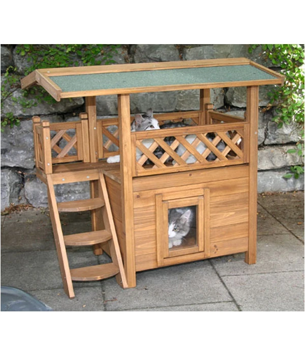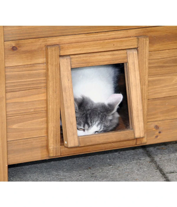 Nach einer anstrengenden Mäusejagd gibt es nichts Entspannenderes, als sich in die stillvolle Katzen-Lodge von Kerbl zurückzuziehen. Hier ist Ihr Samtpfötchen vor Regen und Kälte geschützt. Die Terrasse ist nicht nur ein brillanter Beobachtungsplatz, das große wetterfeste Bitumendach bietet erstklassigen Sonnenschutz an heißen Tagen.