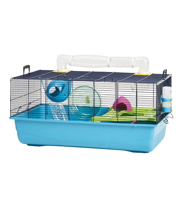 Sie wollen Ihrem Hamster einen Rückzugsort und Abenteuerspielplatz bieten? Dann stellen Sie das Nagerheim Sky Metro von SAVIC in sein Indoor-Freigehege. Das farbenfrohe Spielparadies ist in Ihrer Wohnung auf jeden Fall ein echter Hingucker, der gute Laune macht. Es verfügt über ein Tunnelsystem und eine erhöhte Plattform, die Ihr Liebling ausgiebig erkunden wird. Auch für kletterfreudige Entdecker ist der Käfig ein Ort mit vielen Spielmöglichkeiten. Sollte Ihr Nager nach seinen Abenteuern müde sein, zieht er sich einfach in das Ruhehäuschen zurück, um dort von seinen neuen Abenteuern zu träumen.