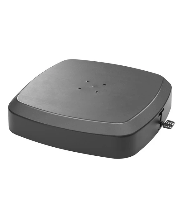 Dank der vier PU-beschichteten Lenkräder ist der Schneider Schirmständer für Ampelschirme sowohl leicht steuerbar als auch ausgesprochen kippsicher. Ein praktisches Fußpedal sorgt für einfache und gefahrlose Hebetechnik. Durch den pulverbeschichteten Stahl verfügt dieser Schirmständer über ein stabiles Fahrgestell und trotzt auch widrigen Bedingungen. Bei den fünf Kunststofftanks sind Sie flexibel in der Wahl des Füllmittels. Ganz wie es Ihnen beliebt, beziehungsweise was Ihnen zur Verfügung steht, sind Sand und Wasser gleichermaßen geeignet. Das Gesamtgewicht beträgt bei leichter Erde ca. 110 kg, bei Flüssigkeit etwa 90 kg. Holen Sie sich den fahrbaren Schirmständer für Ampelschirme von Schneider rechtzeitig, damit Sie den Sommer von Anfang an genießen können.