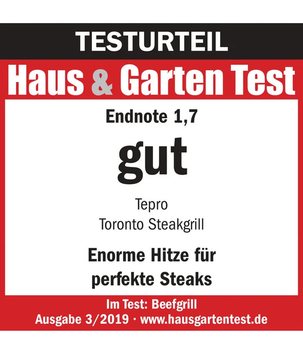 Sie lieben Steaks, die außen knusprig und innen saftig sind? Dann ist der tepro Steakgrill Toronto für Sie eine hervorragende Wahl! Der Hochleistungsgrill, der seine volle Leistung von 800 °C bereits nach einer Aufheizzeit von maximal zwei Minuten erreicht, bringt das Grillgut rasch auf den gewünschten Gargrad. Aufgrund der enorm hohen Temperatur wird der Geschmack im Inneren des Fleisches eingeschlossen, während die Außenseite des Steaks eine perfekte, karamellisierte Kruste erhält. Das Ergebnis: ein unvergleichlicher Geschmack, der Sie begeistern wird. Bestellen Sie hier Ihren tepro Steakgrill Toronto und freuen Sie sich auf schöne Grillabende mit Familie und Freunden!