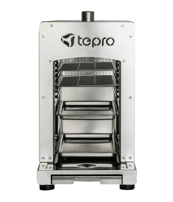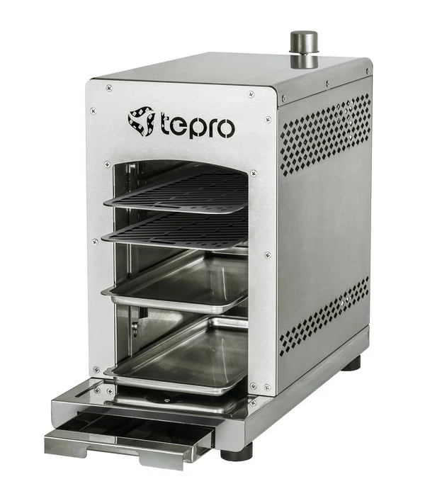 Mit der praktischen Piezo-Zündung setzen Sie den Infrarot-Keramikbrenner in Gang, der eine beachtliche Leistung von 3 kW erbringt. Dank des gut isolierenden, doppelwandigen Edelstahl-Gehäuses erreicht der tepro Steakgrill Toronto schnell seine Betriebstemperatur. Ihre Steaks und nach Wunsch auch Fisch, Gemüse oder Pizza legen Sie auf die jeweils zwei Roste und -schalen mit einer Grillfläche von ca. 31,5 x 15,4 cm. Da Sie Ihr Grillgut in unterschiedlichen Höhen garen und die Temperatur stufenlos regeln können, steht mit dem tepro Steakgrill Toronto dem hervorragenden Gelingen Ihrer Gerichte nichts im Wege. Der Gasgrill ist komplett mit Schlauch und Regler ausgestattet und hat auf seinen vier Füßen einen sicheren Stand. Pflegeleichte Materialien und entnehmbare Grillrostschienen erleichtern die Innenraumreinigung, sodass Ihr Hochleistungs-Steakbereiter schnell wieder einsatzbereit ist.