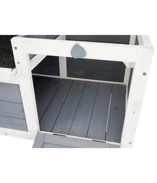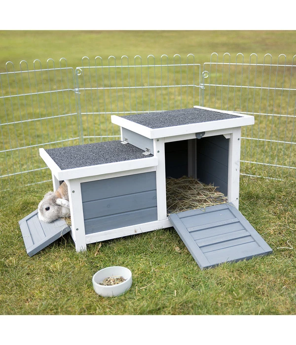 Besitzen Sie oder Ihre Kinder Meerschweinchen oder Kaninchen und sind auf der Suche nach einem Schlafhäuschen für den Außenbereich, in das sich die Kleinen zurückziehen können? Das Nagerschlafhaus aus dem Hause Trixie können Sie bestens in Ihr Freilaufgehege im Garten stellen. Das Kleintierhaus besitzt einen großen Innenraum und zwei verschließbaren Türklappen. Diese fungieren geöffnet wie eine Rampe, über die Ihre Fellnasen an den beiden Ein- bzw. Ausgängen bequem hinein- und wieder hinauslaufen können. Vier Füße am Trixie Nagerschlafhaus sorgen für eine gute Luftzirkulation und dafür, dass Ihre Fellnasen vor Bodenfeuchte und -nässe geschützt werden. Mit dem geschmackvollen Bicolor-Design ist das Kleintierhaus auch ein optischer Hingucker und bietet Ihren Kaninchen & Co. im Freigehege eine tolle Rückzugsmöglichkeit.